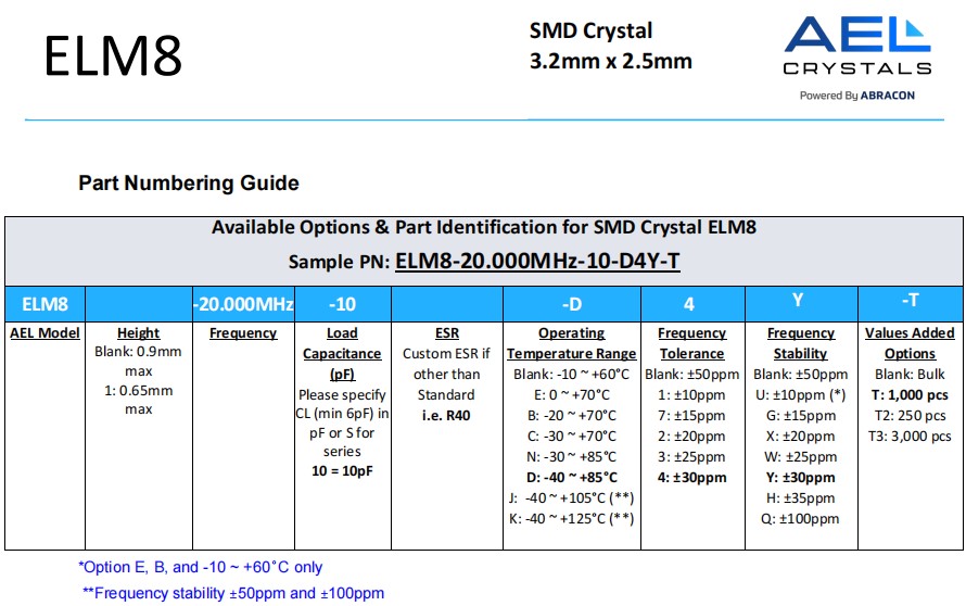 ELM8-24.000MHz-9-R40-N1U-T,AEL進口晶振,3225mm諧振器,車載控制器晶振,規(guī)格表