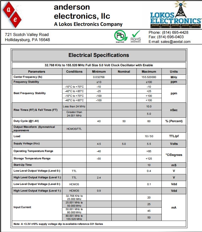 Anderson進(jìn)口晶振|AE431長(zhǎng)方形鐘振|16.384MHz規(guī)格表