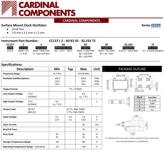 美國Cardinal晶振,CC137貼片振蕩器,CC137LZ-A0B245-24.000TS晶振