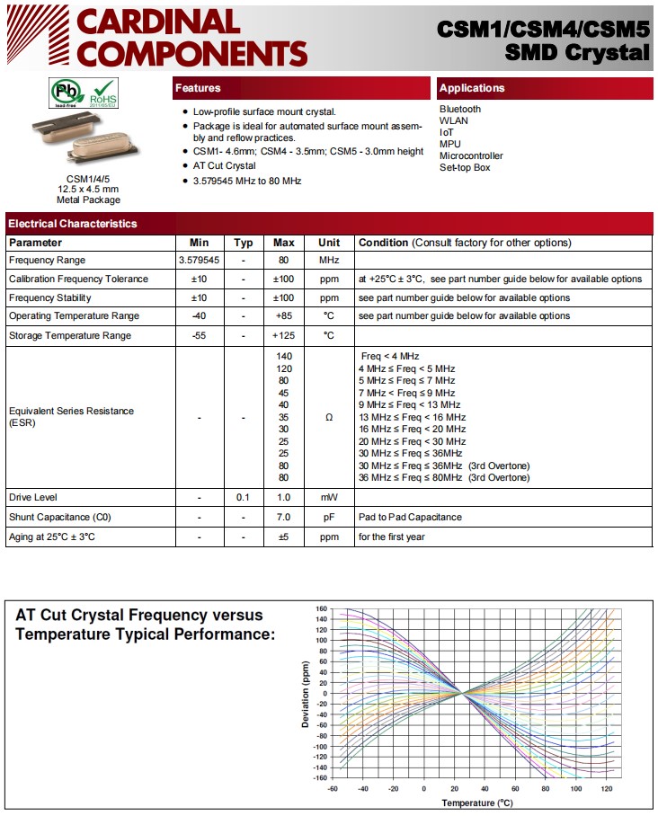 | CSM1Z-A5B2C5-40-14.7456D18 | Cardinal晶振 | CSM1 | MHz Crystal | 14.7456MHz |