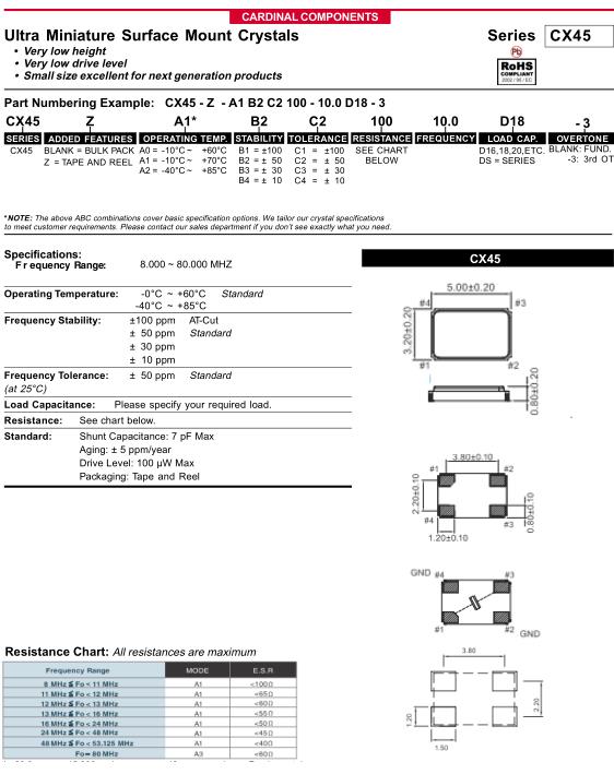 更多>>美國Cardinal晶振,CX45四腳晶振,CX45Z-A1B3C3100-12.0D18-3晶振