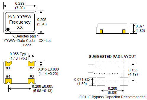 Symmetry: (Standard “2”) 40/60% Max @ 50% Vdd (Option “9”) 45/55% Max @ 50% Vdd Rise/Fall Time: 6ns Max @ 20% to 80% Vdd Logic: "0" = 10% Vdd Max "1" = 90% Vdd Min Disable Time: 200ns Max Start-up Time: 10ms Max Load: 30pF Max |