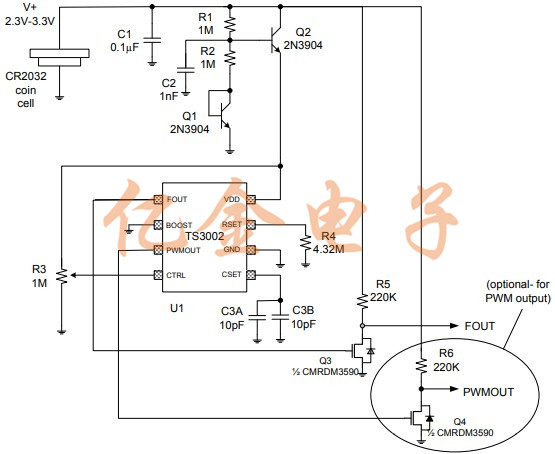 圖1.從CR2032紐扣電池工作的TS3002