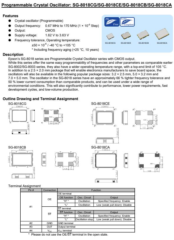| X1G005601031000 | SG-8018CG | 20.480000 MHz | 2.50 x 2.00 x 0.80 mm | CMOS | 1.620 to 3.630 V | -40 to 105 °C | +/-50 ppm | ≤ 4.4 mA |