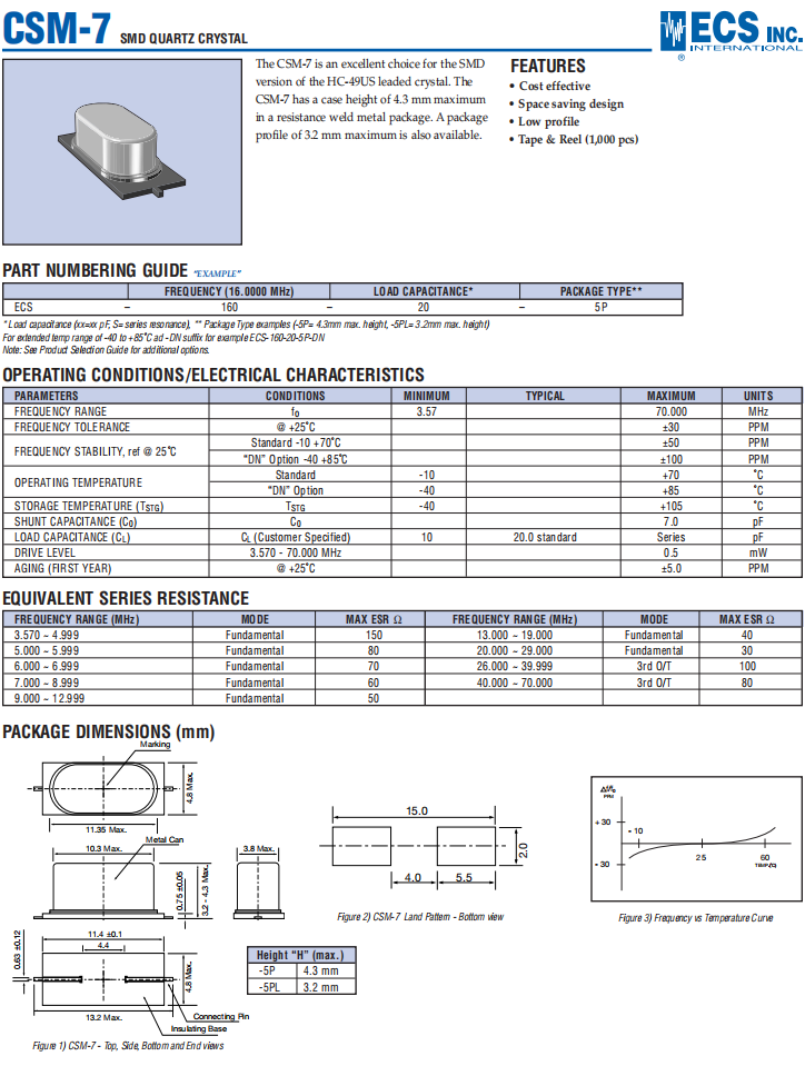ECS-250-18-5P-F-TR,CSM-7諧振器,ECS藍(lán)牙模塊晶振,兩腳貼片晶振,規(guī)格表