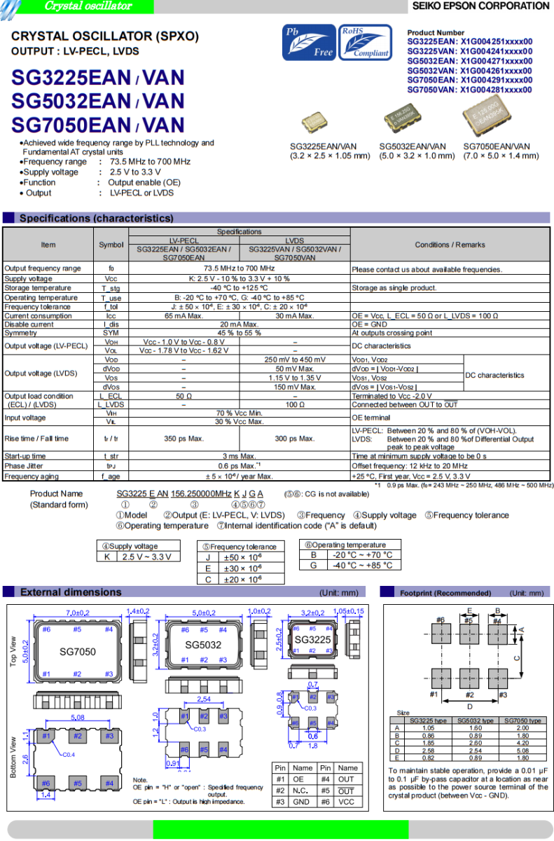 | SG3225EAN 125.000000M-KJGA6 | EPSON | SG3225EAN | XO (Standard) | 125 MHz | LVPECL | 2.5V ~ 3.3V | ±50ppm |