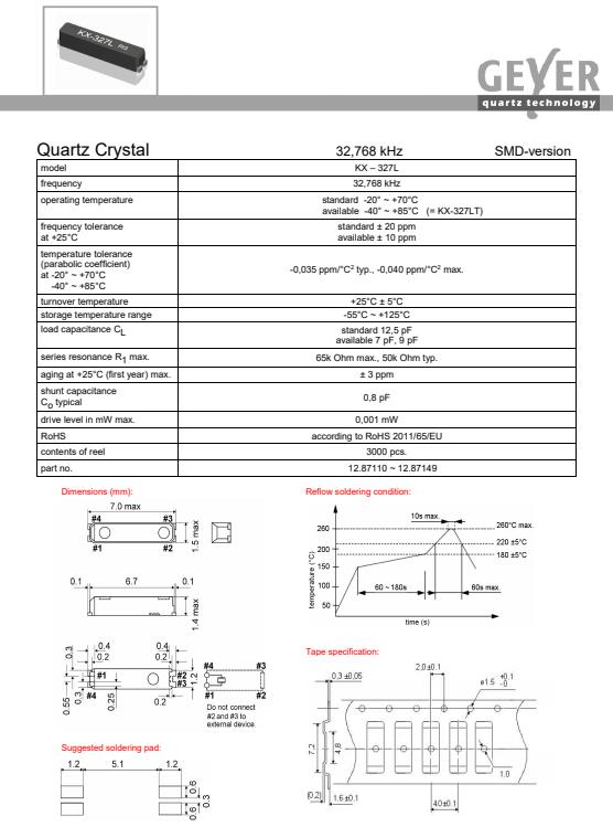 格耶晶振,KX-327L貼片晶振,12.87110~12.87149無源晶振