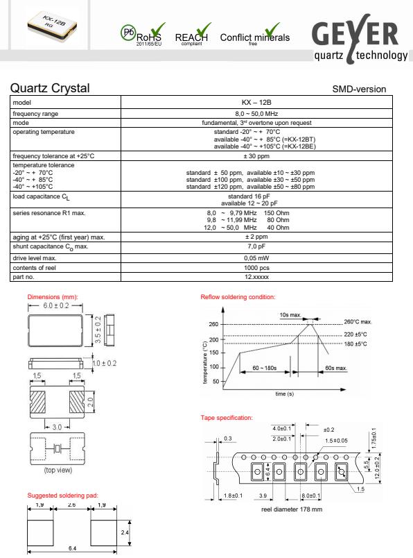 格耶德國(guó)晶振,KX-12B無(wú)源諧振器,6035mm兩腳晶振,貼片晶振本身體積小,超薄型石英晶體振蕩器,特別適用于有目前高速發(fā)展的高端電子數(shù)碼產(chǎn)品,因?yàn)?strong>貼片晶振本身小型化需求的市場(chǎng)領(lǐng)域,小型,薄型是對(duì)應(yīng)陶瓷振蕩器(偏差大)和普通的石英晶體振蕩器(偏差小)的中間領(lǐng)域的一種性價(jià)比較出色的產(chǎn)品.產(chǎn)品廣泛用于筆記本電腦,無(wú)線電話,衛(wèi)星導(dǎo)航SSD,USB,Blu-ray等用途,符合無(wú)鉛焊接的高溫回流焊曲線特性.