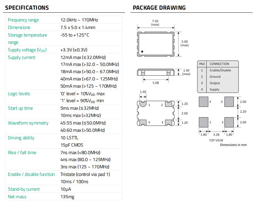 | Supply voltage (VDD) | 3.3V (±5%) | |