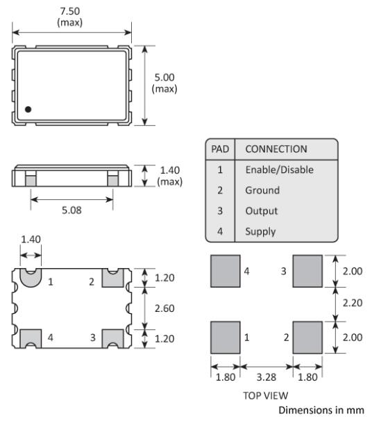 GXO-U108L/A 48.0MHz-Golledge品牌-6G移動網(wǎng)絡晶振尺寸圖
