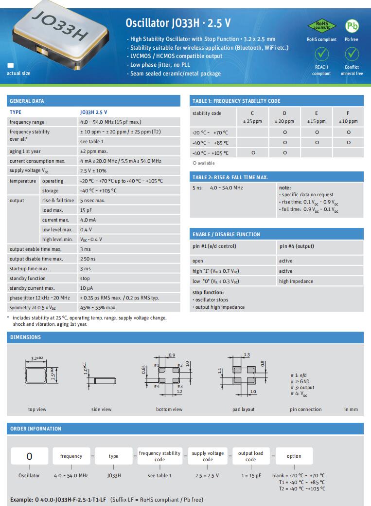 Jauch品牌,O 19.20-JO33H-F-2.5-1-T1-LF,6G移動通信晶振規(guī)格表