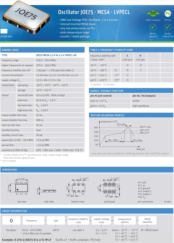 Jauch晶振,O 170.0-JOE75-B-3.3-T1-M-LF,6G無線通信晶振規(guī)格表