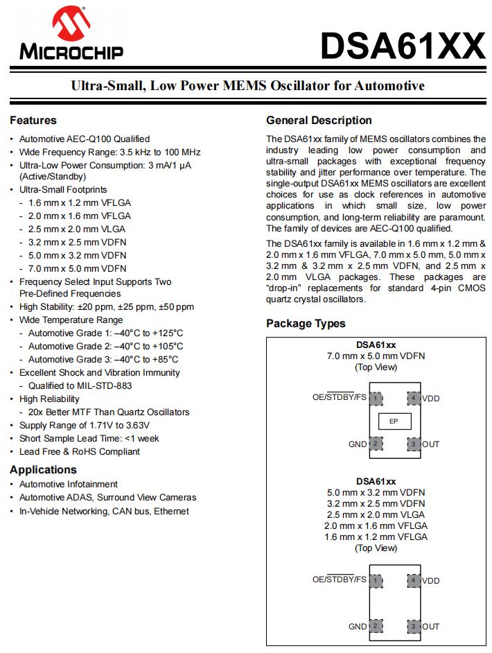 | DSC1124DE1-125.0000T | Microchip Technology | DSC1124 | 125MHz | 2.25 V ~ 3.6 V | 0.098" L x 0.079" W (2.50mm x 2.00mm) |