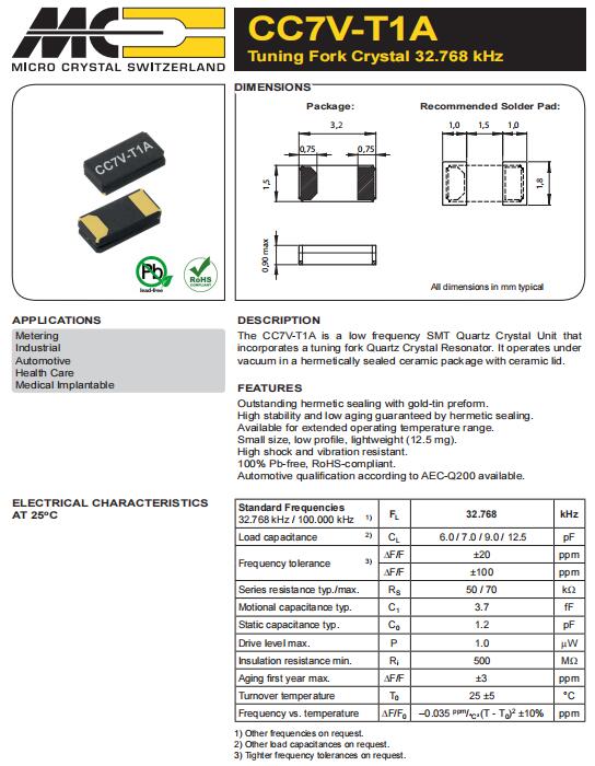 CC7V-T1A-32.768kHz-6pF-20ppm-TC-QA,6G無線網(wǎng)絡(luò)晶振,瑞士微晶晶振規(guī)格表
