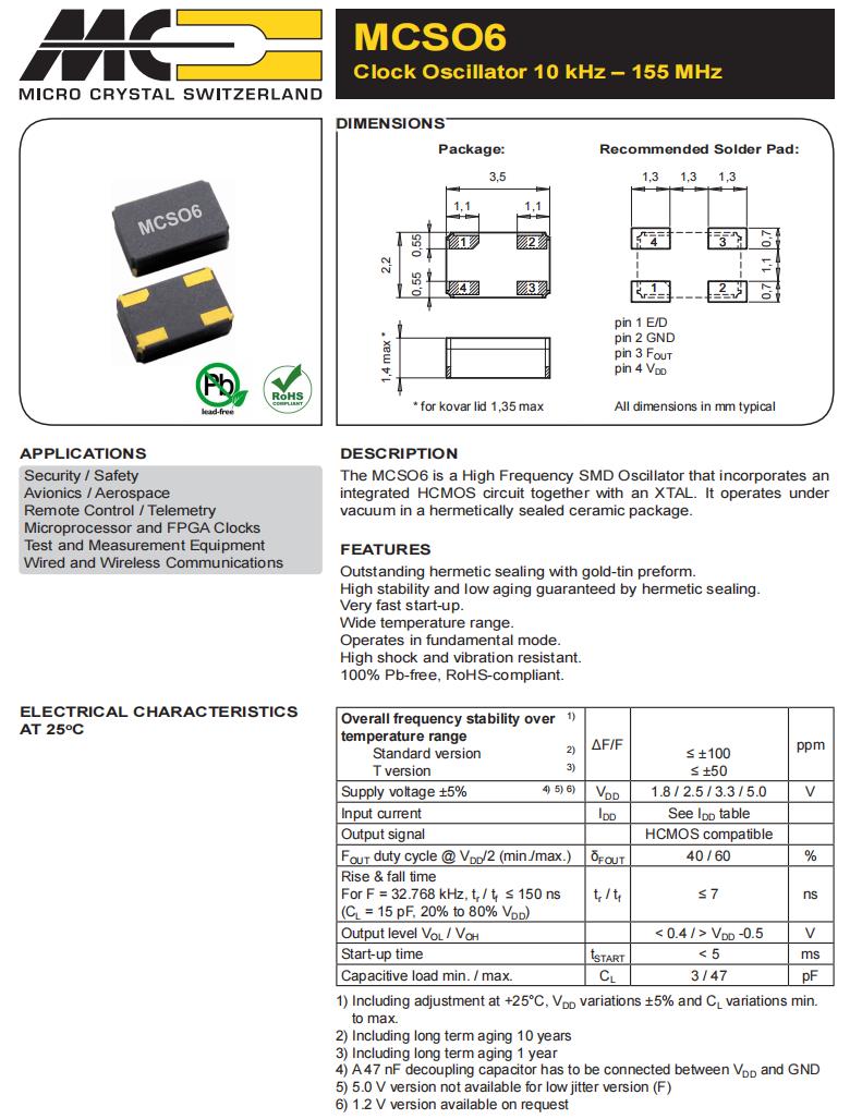 MCSO6FKVT–C-40.000MHz-E/D,6G無線網(wǎng)絡(luò)晶振,3522mm貼片晶振,瑞士微晶晶振,MCSO6有源晶振,MCSO6FKVT–C-40.000MHz-E/D晶振,3522mm貼片晶振,石英晶體振蕩器,頻率40MHz,電壓3.3V,頻率穩(wěn)定性50ppm,工作溫度-55~125°C,耐高溫晶振,抗沖擊晶振,6G無線網(wǎng)絡(luò)晶振,航空電子晶振,遠(yuǎn)程控制應(yīng)用晶振,測(cè)試和測(cè)量設(shè)備晶振,微處理器晶振.