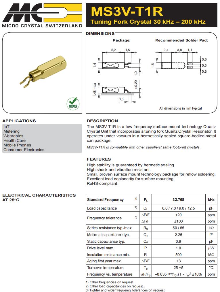 | CM7V-T1A-32.768kHz-12.5pF-100PPM-TA-QC | Micro Crystal | 晶體 32.768 kHz 12.5 pF +/-100 PPM -40/+85C |