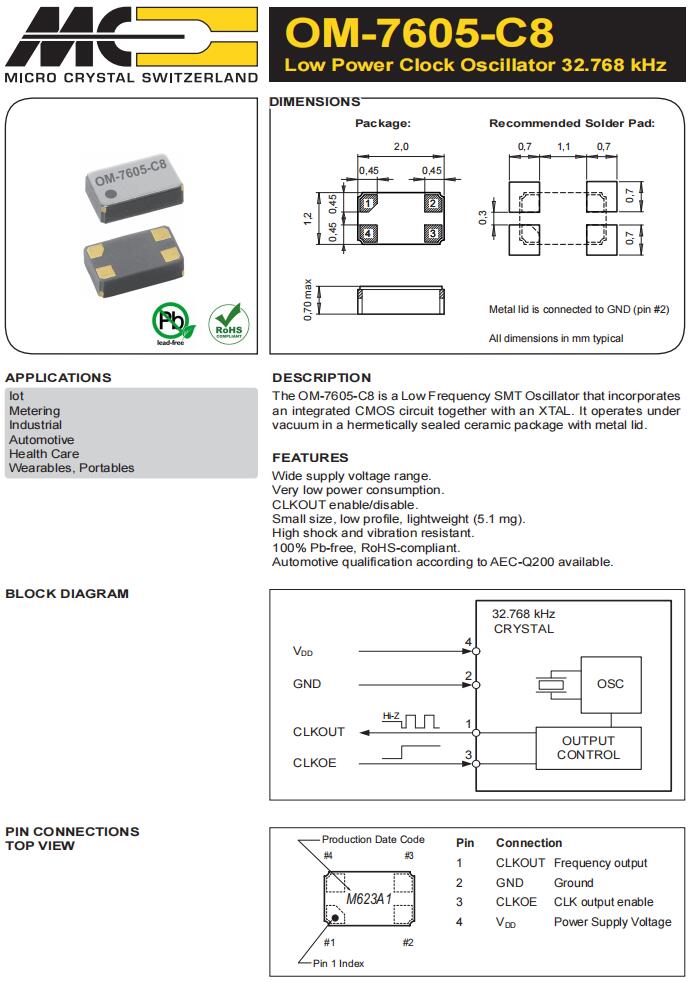 | CM8V-T1A-32.768kHz-7pF-20PPM-TB-QC | Micro 晶振 | 晶體 32.768 kHz 7.0 pF +/-20 PPM -40/+125C | Crystals |