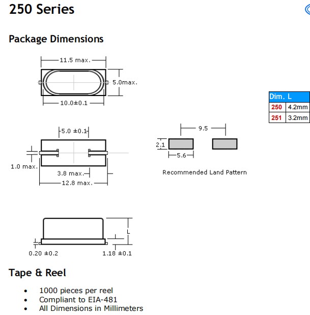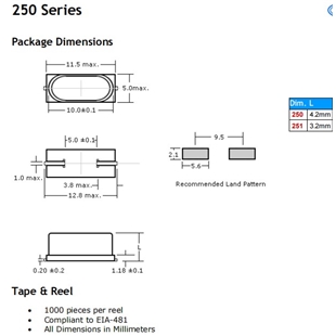 OSCILENT晶振,250-14.7456M-20-05KS-TR,6G無線局域網(wǎng)晶振尺寸圖