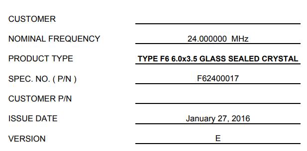 | 型號(hào) | F62400017晶振 |
