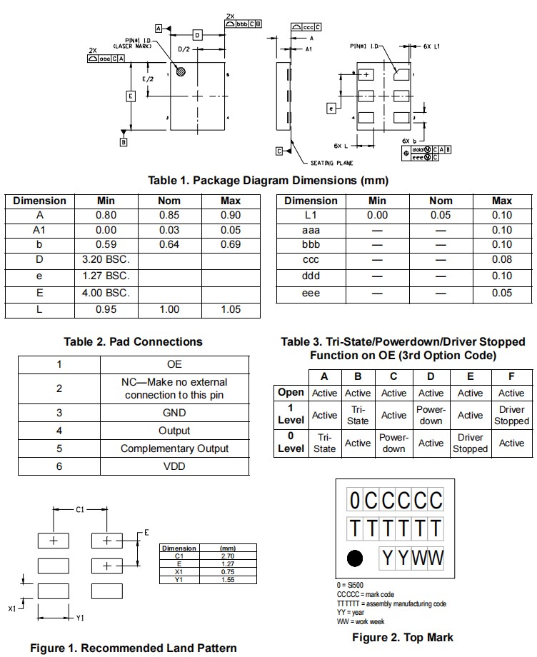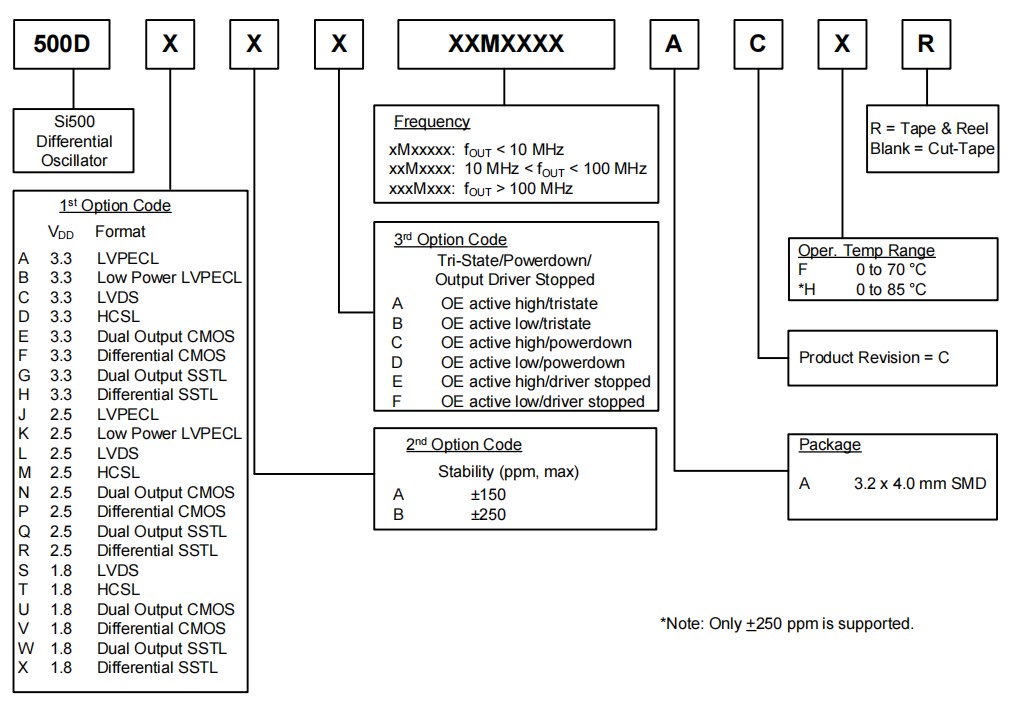 500DCAE25M0000ACFR,Si500D,Skyworks光纖通信晶振,LVDS輸出差分振蕩器,規(guī)格表