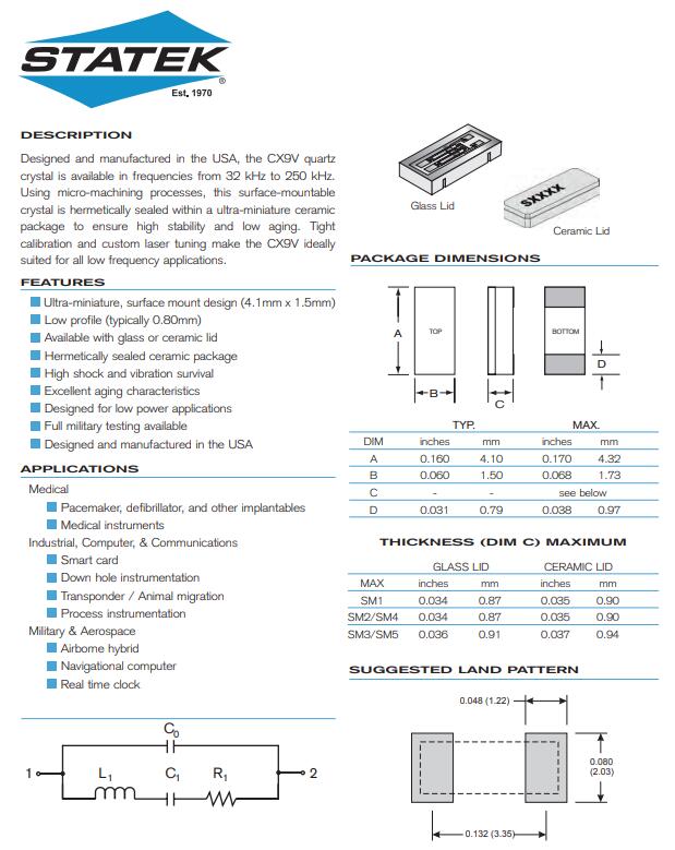 進口STATEK晶振,CX9型號晶振,4015小體積晶振