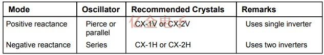 表1.基本振蕩器電路的推薦狀態(tài)晶體
