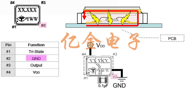 來自TAITIEN Crystal Oscillators的EMI 對(duì)于TATIEN石英晶體振蕩器,頂部金屬蓋電氣連接GND端子.