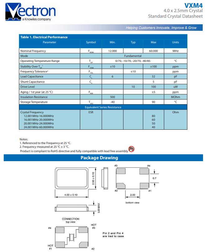 更多>>維管石英晶體,VXM4晶振,4025貼片晶振
