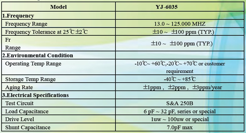 石英晶振6035規(guī)格