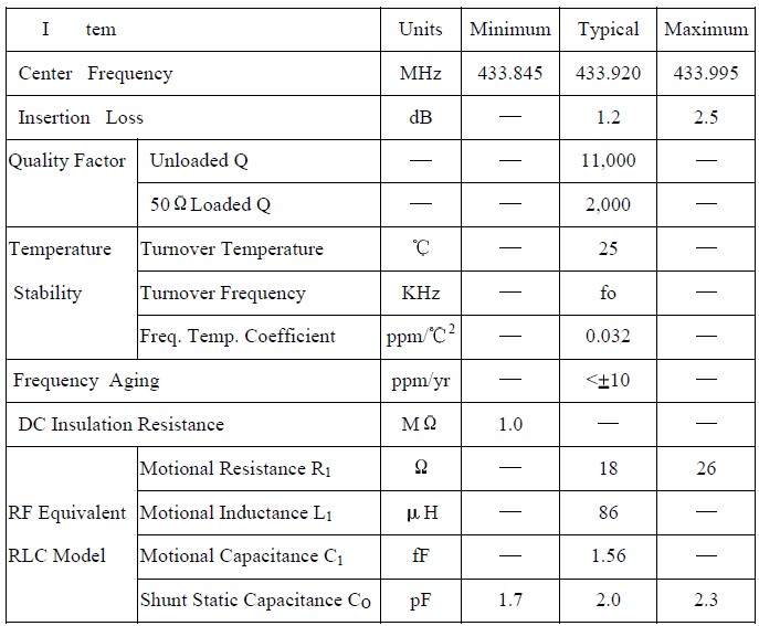 聲表濾波器TO39,陶瓷濾波器R433.92M