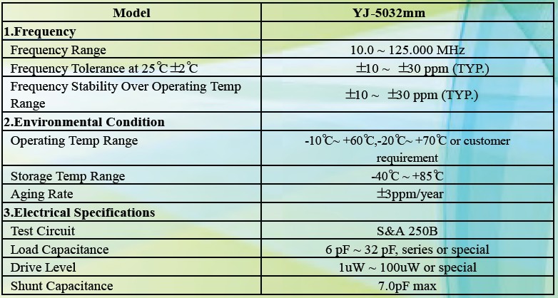 石英晶振5032規(guī)格