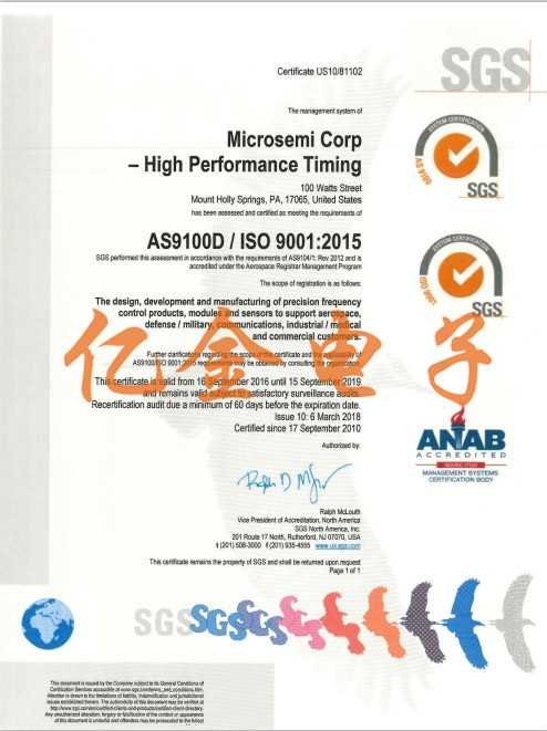- [2019-08-20]美國Vectron晶振集團(tuán)的AS9100航空質(zhì)量...