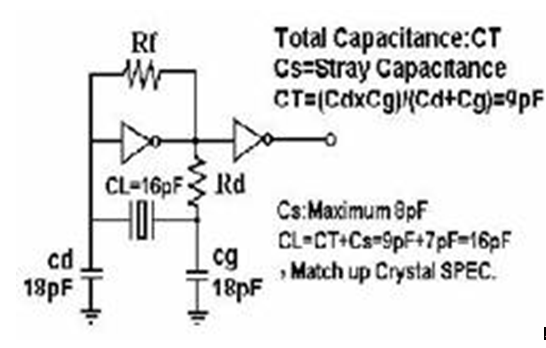 一般來說,微處理器的振蕩電路由考畢茲電路顯示派生如下:鎘和CG是外部負載電容,其中已建成的芯片組。(請參閱芯片組的規(guī)格)Rf為具有200KΩ?1MΩ反饋電阻。它的內置芯片一般設置。Rd為限流電阻470Ω與1KΩ?。這個阻力是沒有必要的公共電路,但僅用于具有高電源電路。一個穩(wěn)定的振蕩電路需要的負電阻,其值應是晶體阻力的至少五倍。它可寫為|-R|>5的Rr。例如,為了獲得穩(wěn)定的振蕩電路中,IC的負電阻的值必須小于?200Ω時的晶體的電阻值是40Ω。負阻“的標準來評估一個振蕩電路的質量。在某些情況下,例如老化,熱變化,電壓變化,以及等等,電路可能不會產(chǎn)生振蕩的“Q”值是低的。因此,這是非常重要的衡量負電阻(-R)圖說明: