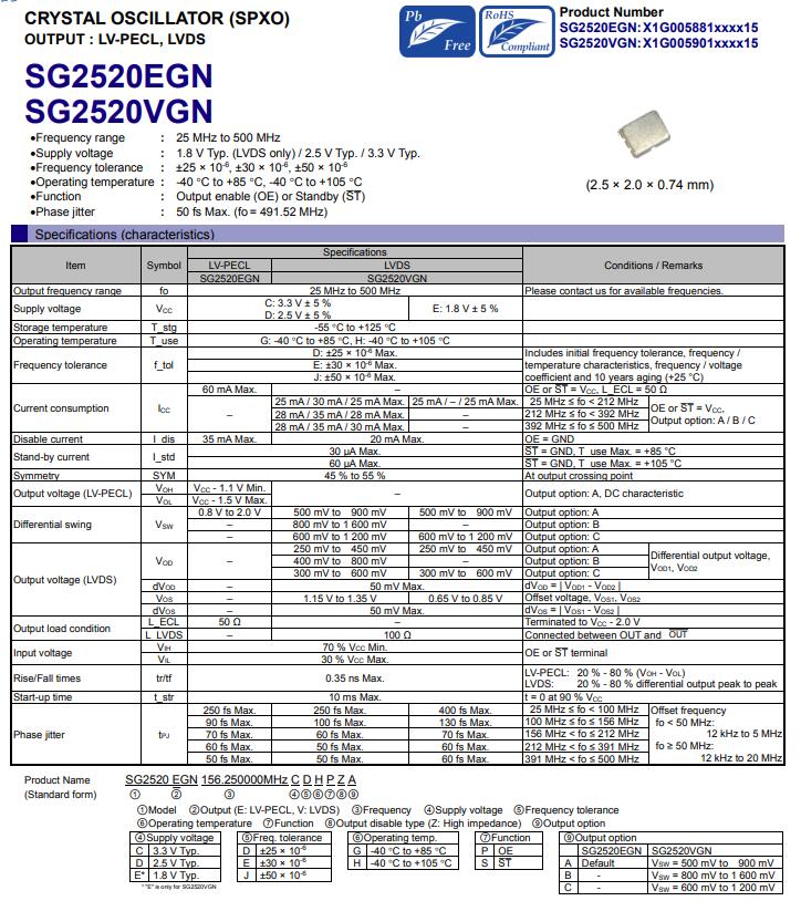 - [2024-12-05]高頻和低抖動的 SPXO SG2016CBN,SG25...