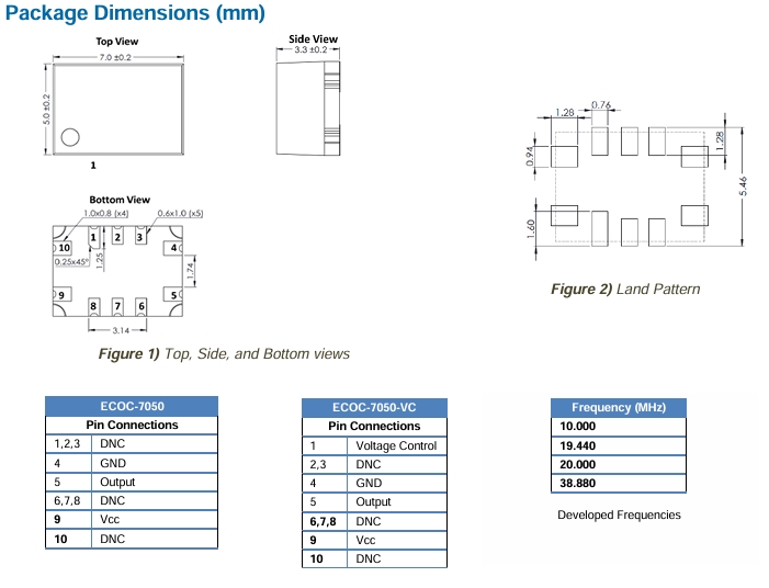 7.0 x 5.0 x 3.3 mm 封裝尺寸