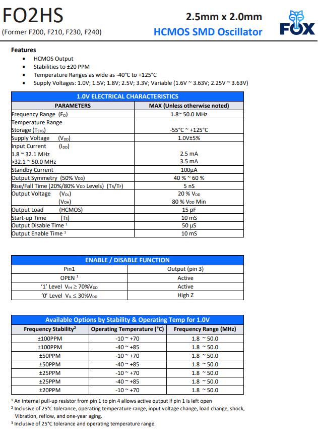 | F316R-50.000 | Fox振蕩器 | F310R | XO (Standard) | 50MHz | 1.8V |