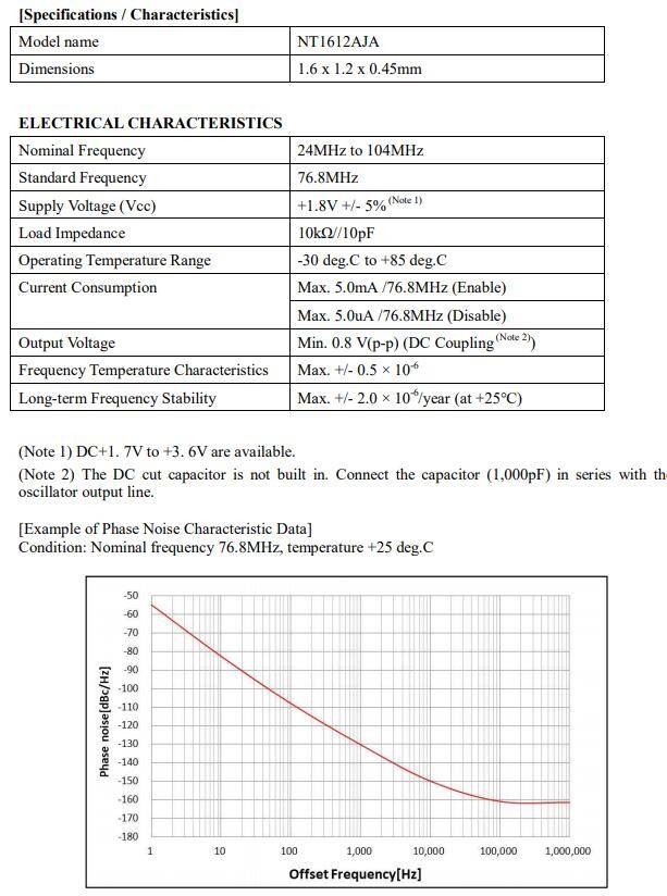 NT1612AJA溫補晶振的輸出頻率范圍在26-52MHz,適合高頻器件應(yīng)用