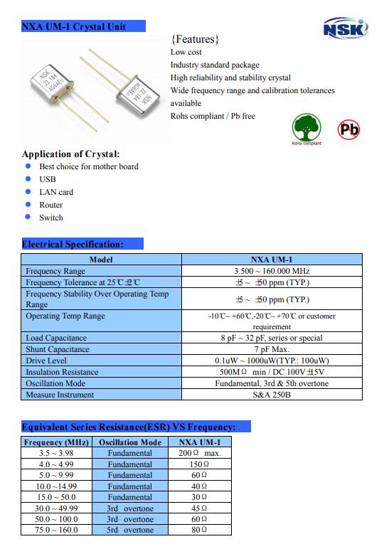 更多>>NSK晶振,NXAUM-1晶振,8032二腳插件晶振